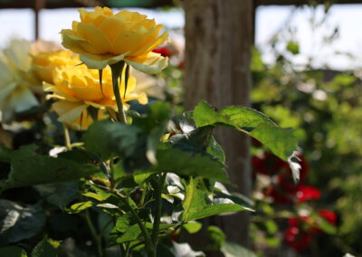 - Róża krzewiasta – klasyczna, ozdobna, kwitnąca przez cały sezon.