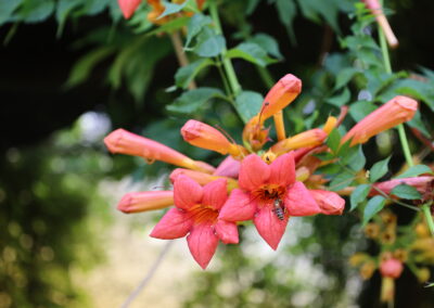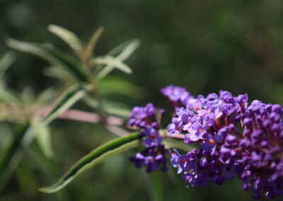 - Budleja Dawida – „motyli krzew”, intensywnie pachnące kwiaty, przyciąga owady.