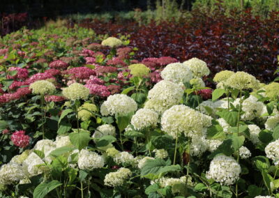 - różnorodność gatunków i odmian – od kwitnących forsycji, hortensji czy jaśminowców, po zimozielone krzewy liściaste i iglaste,