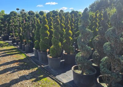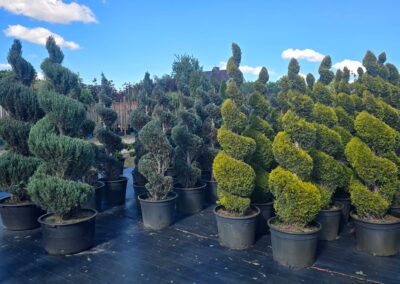 W naszej szkółce ogrodniczej w Anielinach oferujemy szeroki wybór roślin formowanych, które zachwycają precyzją kształtu i elegancją. To wyjątkowe rośliny, które nadają przestrzeni charakteru, harmonii i reprezentacyjnego wyglądu.